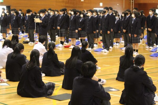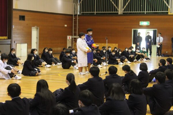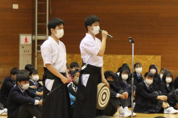 放課後体育館にて,各部の代表者が部活動の紹介を行いました。
