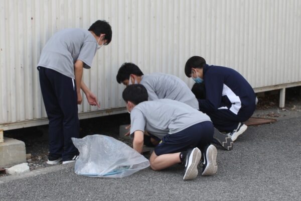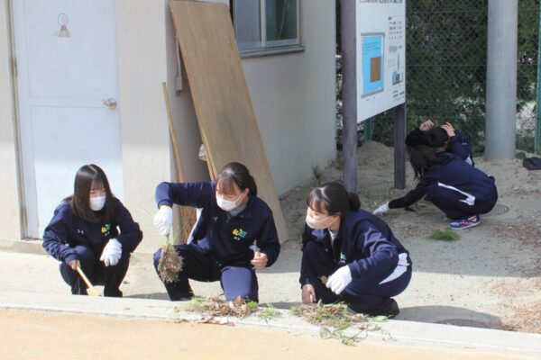 6校時,校舎外および周辺道路の清掃美化活動を行いました。