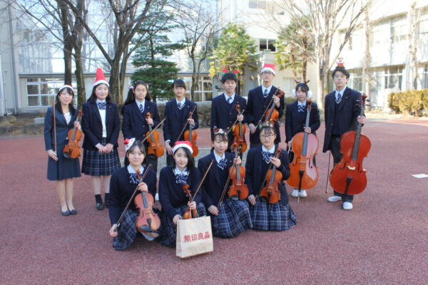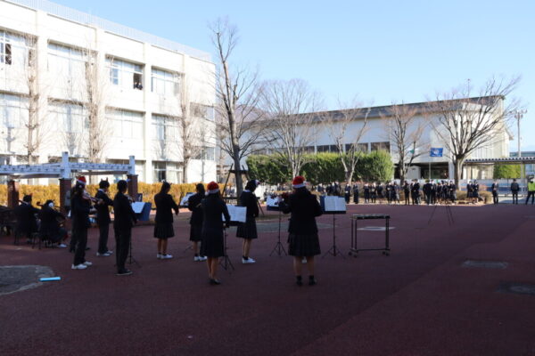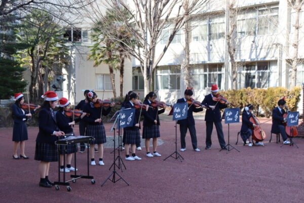 昼休みに音楽部が赤の広場に於いて,クリスマスコンサートを開催しました。