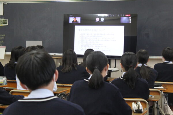 山梨県立甲府東高等学校 > 活動の様子 > 東高先輩職業人の話(1年) 2022年10月17日カテゴリー: 活動の様子 東高先輩職業人の話(1年) 5・6校時,本校の先輩方から現在就いている職業について,お話を聞く機会を設けました。