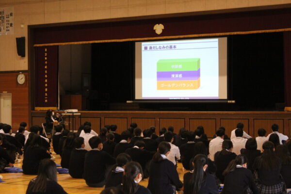 5校時,講師の先生をお招きし「みだしなみセミナー」と題して,制服の正しい着こなし方や服装の持つ意味,そして身だしなみの大切さについて,お話しいただきました。