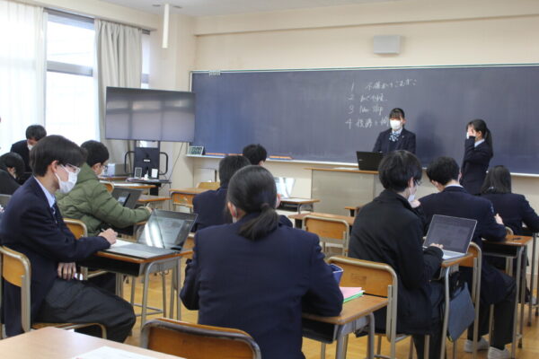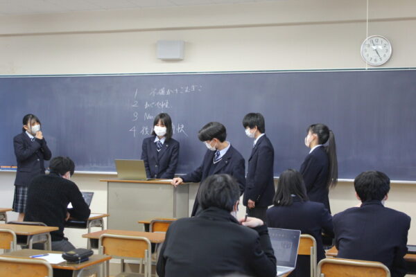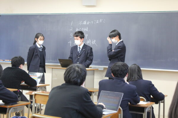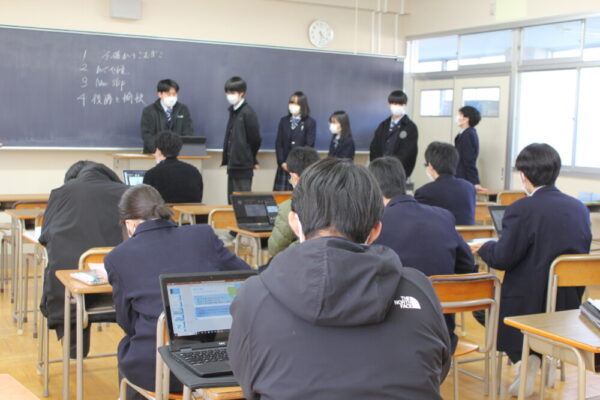 調査班ごとに企業・事業所に足を運び,調査した結果を各クラス代表者がオンラインにて,発表をしました。