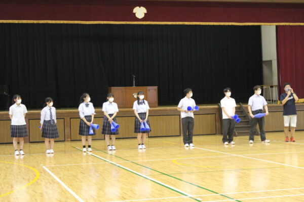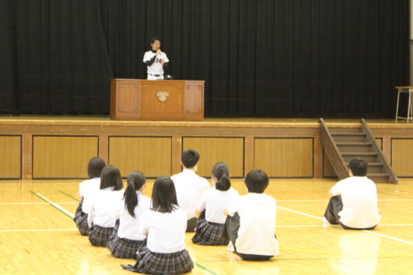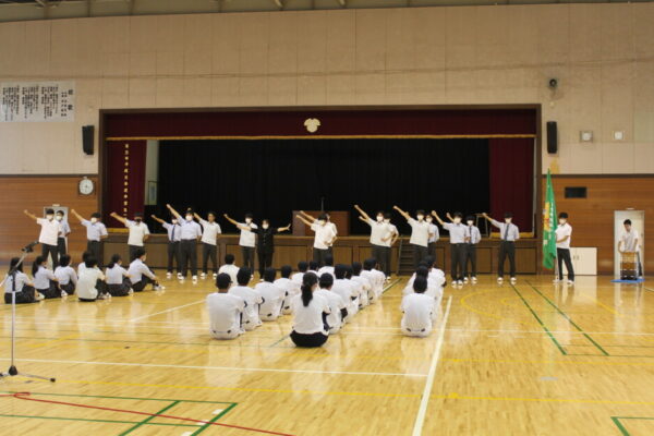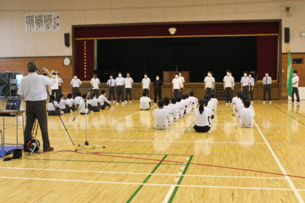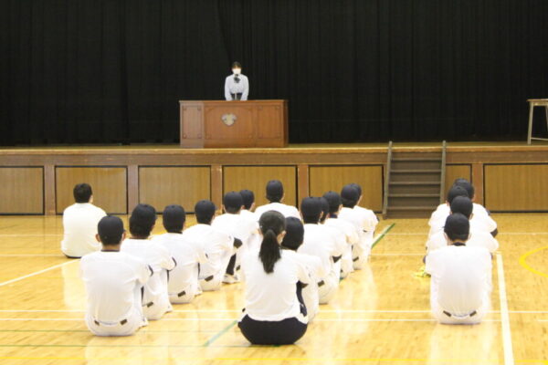 7校時体育館に於いて,野球部及び全国大会等壮行会を開催しました。