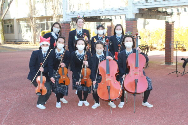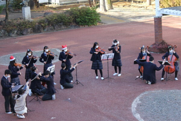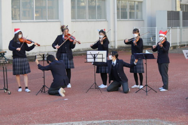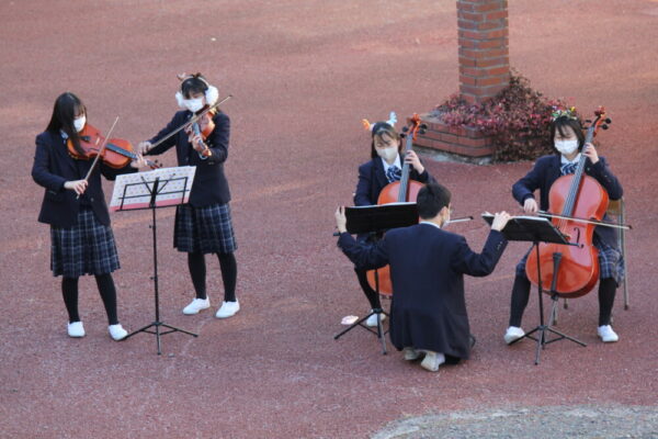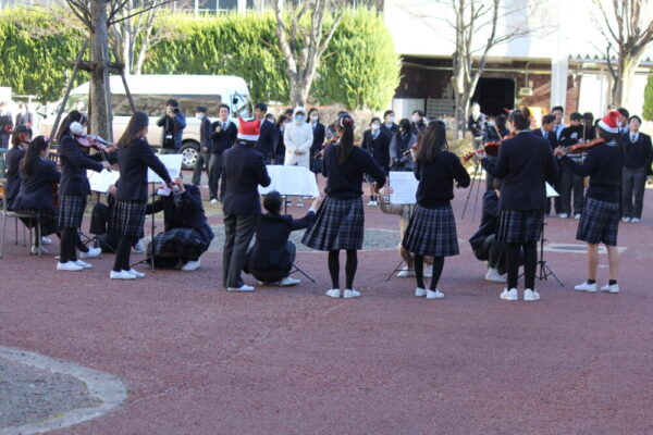昼休みに赤の広場で,音楽部がクリスマスコンサートを開催しました。