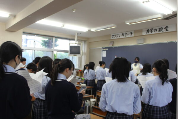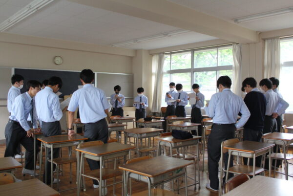 納め式・新生徒会役員認証式・生徒会役員交代式・前期終業式