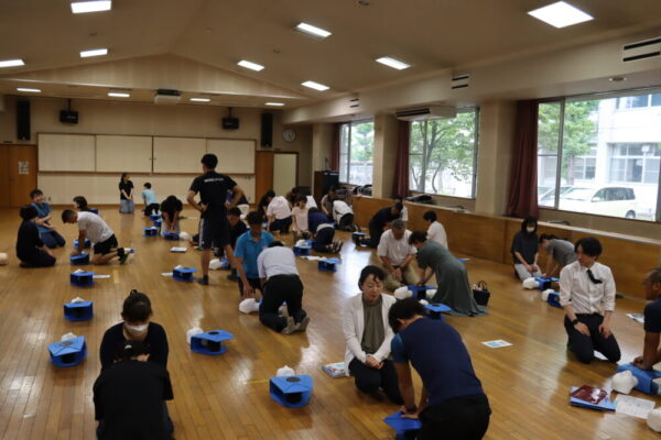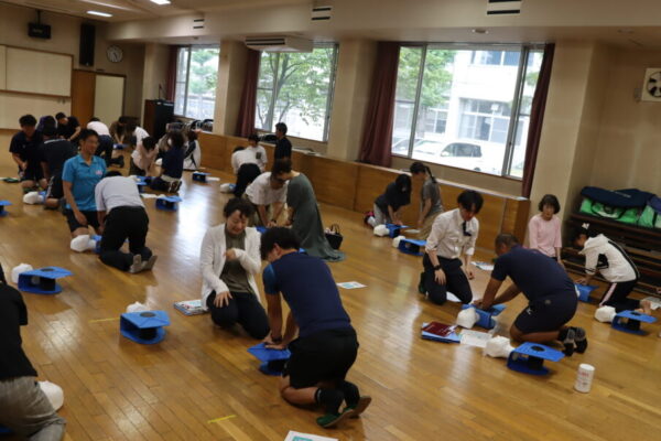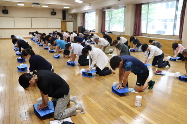 山梨県立甲府東高等学校 > 活動の様子 > 心肺蘇生法講習会(教職員) 2025年7月11日カテゴリー: 活動の様子 心肺蘇生法講習会(教職員) 日本赤十字社山梨県支部より講師をお招きし,心配蘇生法や自動体外式除細動器(AED)の使用方法について正しい知識を学びました。