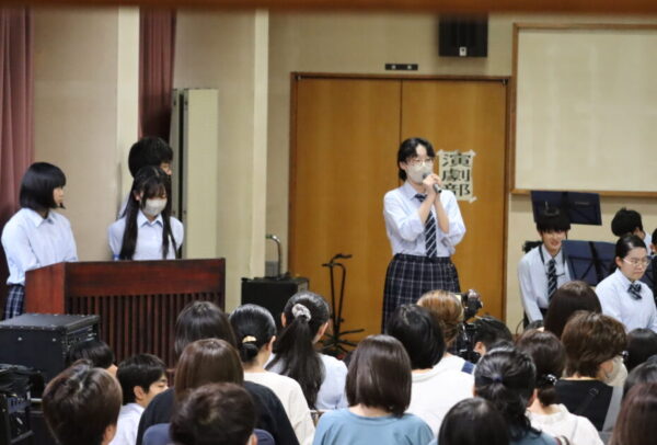 納め式・新生徒会役員認証式・生徒会役員交代式・前期終業式
