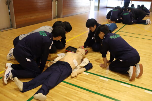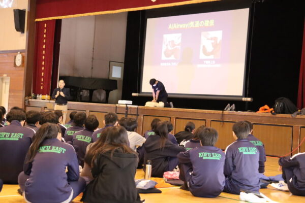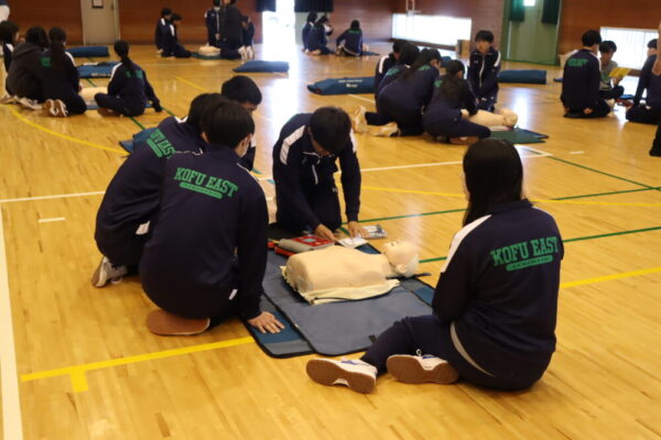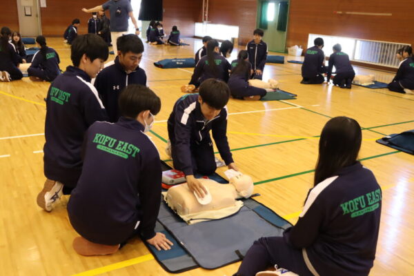 山梨県立甲府東高等学校 > 活動の様子 > 心肺蘇生法講習会(1年)