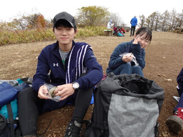 お昼休憩。頂上で食べるご飯は美味しいけれど少し寒かったです。(気温9℃)