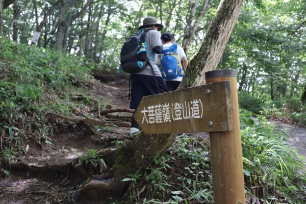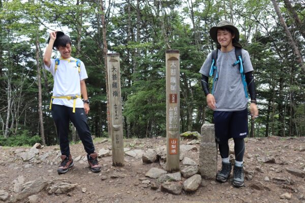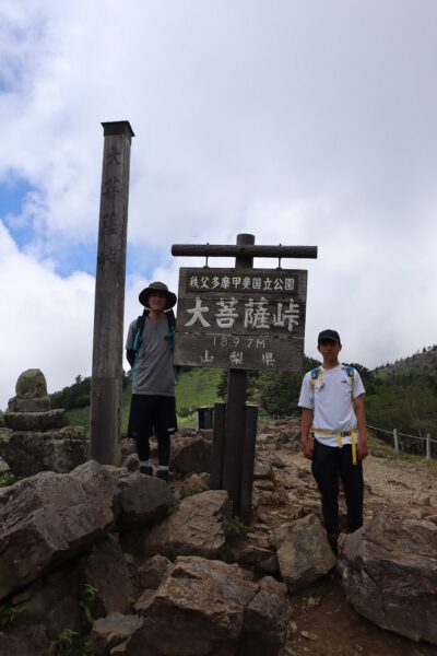 そこから10分ほど歩き、大菩薩峠に到着。暑さのためか虫が多く、部員も苦笑いです。