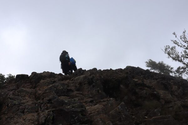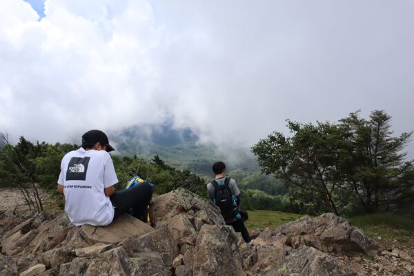 一時間半ほどで雷岩に到着。あいにくの天気のため景色はイマイチでした。