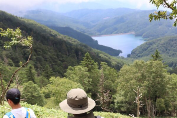 尾根歩きをしながら介山荘を目指します。大菩薩湖も見えてきました。